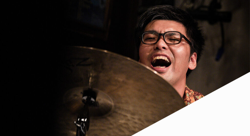 音を“叩く”のではなく、流れを生み出す。そのしなやかな推進力は、バンド全体を自然に前へと導く。共演者の個性を引き出しながら、場そのものを音楽に変えていく存在。